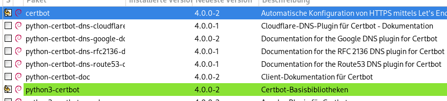Bevor man mit dem Certbot Zertifikate anfordert, muss man zuvor bei einem üblichen Internet Provider (Hetzner, IONOS usw.) einen DNS Namen für seinen Server registriert haben, z.B. meinserver.meinedomaene.de. Nach der technischen Registrierung kann es ein paar Stunden dauern, bis der DNS Eintrag auf alle DNS Server weltweit publiziert wurde.
