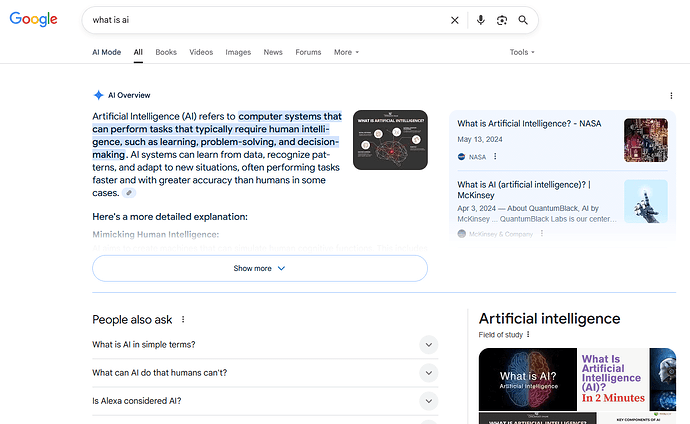 Alle Suchmaschinen arbeiten mittlerweile mit AI-generierten Übersichten. Ob das, was man sucht, Teil dieser Übersicht ist oder nicht, das ist mehr oder weniger Zufall (bzw. genau genommen Statistik). Wer weiterhin gerne selber entscheidet, ob er einer gefundene Informations-Quelle im Netz traut oder nicht, kann entweder (bei Google) “-ai” hinter die Suchanfrage setzen oder dieses Addon benutzen. Es versteckt die KI-generierte Übersicht nicht nur, sondern schaltet die Abfrage der Zusammenfassung gezielt für die Suchmaschinen DuckDuckGo, Ecosia, Google, Qwant ab.Was nebenbei wertvolle Energieressourcen spart.